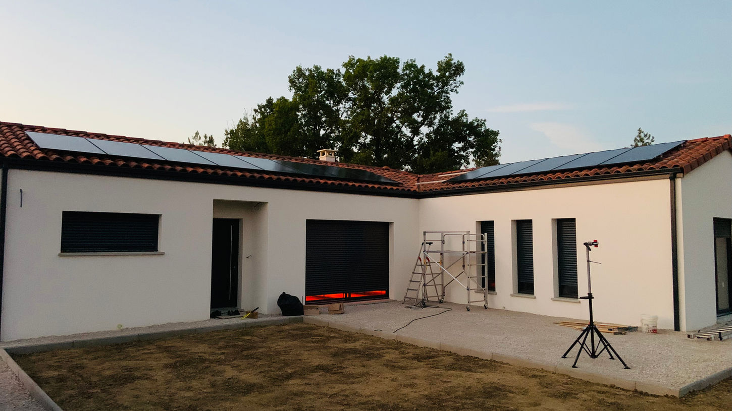 Prise de vue de la maison avec les nouveaux panneaux photovoltaiques